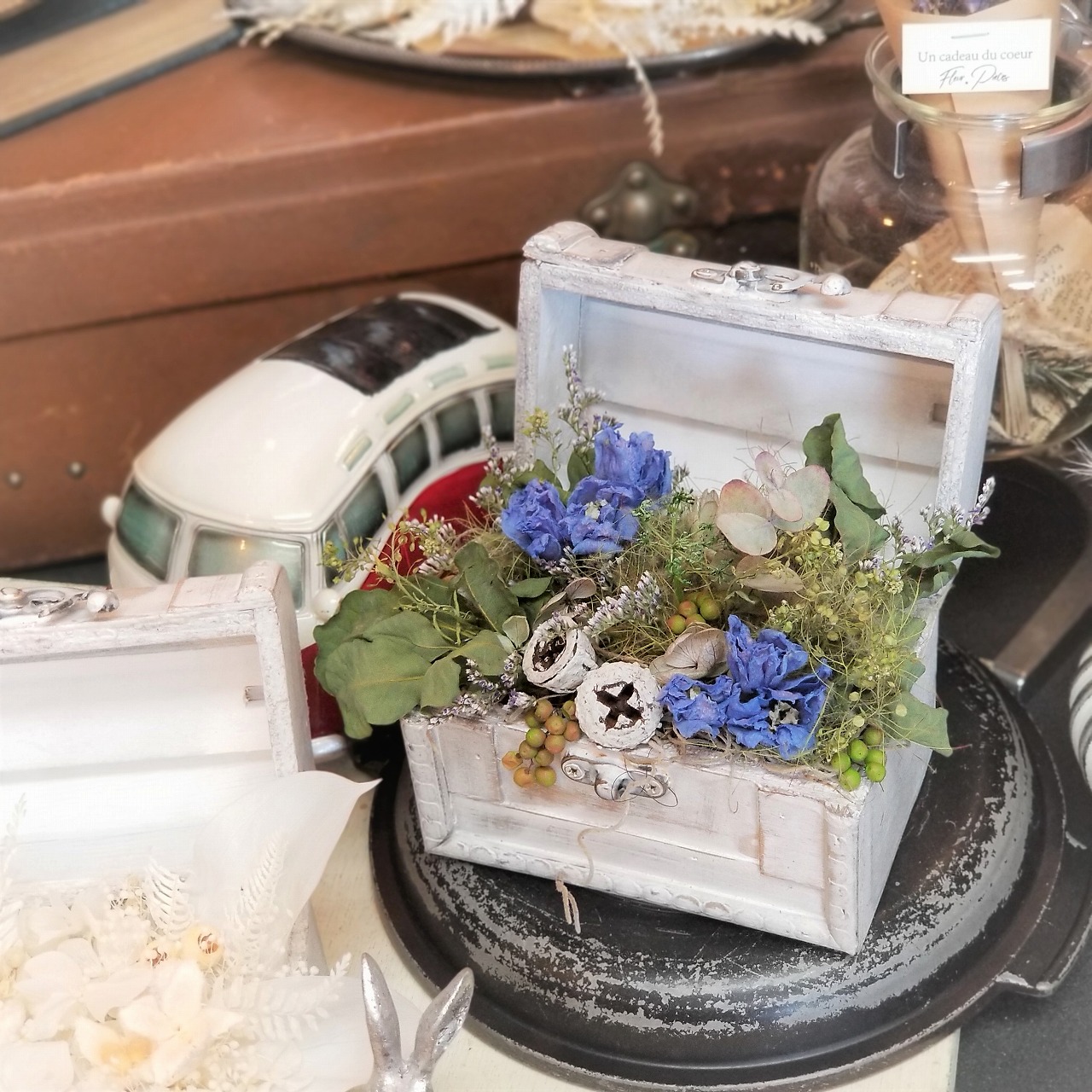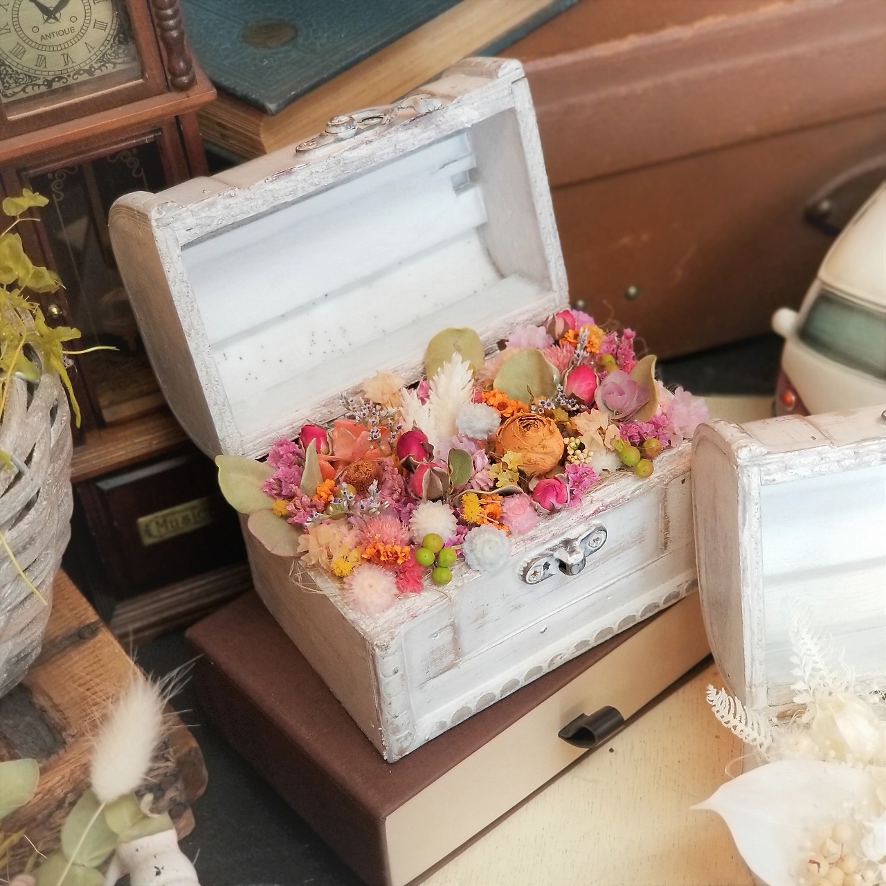 ●Treasure Box (S)●長い年月を経たようなクラシック感のある風合いの宝箱にドライフラワーを詰め込みました。