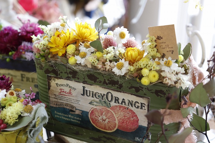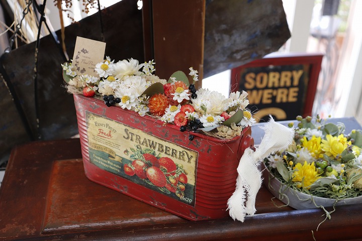 ●ドライタンブラー●コーヒーのタンブラーのようなブリキカップにドライフラワーをアレンジしました。